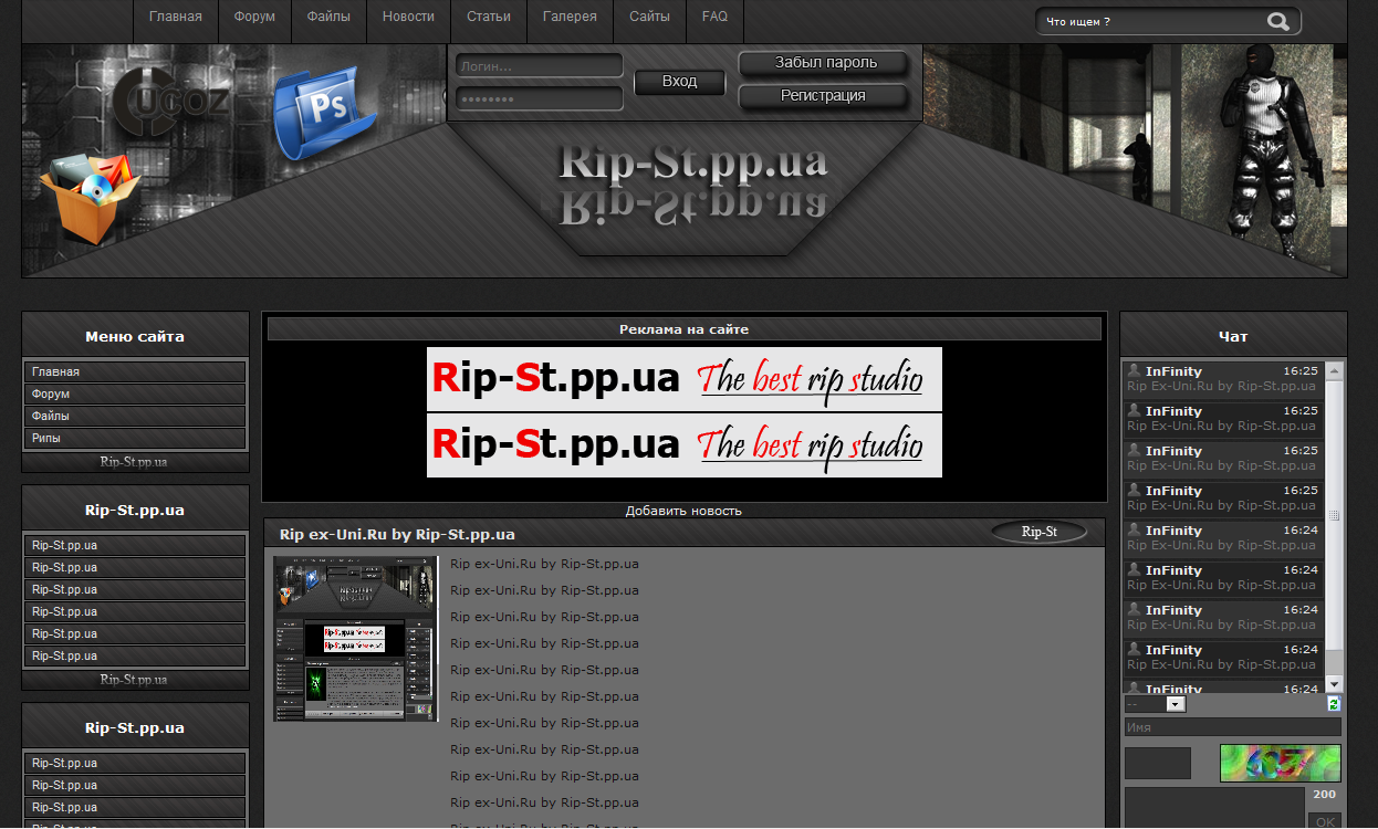 | Рипал: InFinity Комплектация: CSS, HTML, Все PSD, Меню, Вид новостей, Вид каталога файлов, Блок рекламы, Общий вид страницы форума. Конструктор: Работает Баги: не обнаружено | |